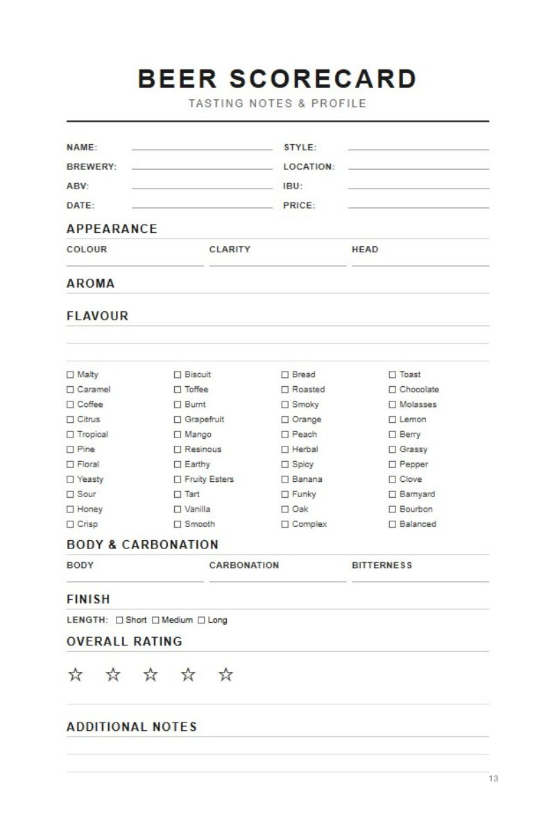 Explore lagers, ales, stouts, IPAs, sours, and more with structured scorecards, clear flavour wheels, and space to build your own reference over time.
